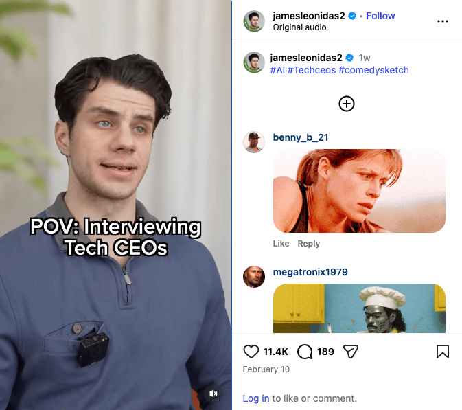 On the other end of the spectrum. While some people are genuinely convinced AI is going to take over the world, most people still haven't figured out how to get it to take notes in their meetings. For a laugh, this recent James Leonidas sketch captures the paranoia perfectly. A parody interview with tech executives about AI surveillance, bunkers, and the impending end of civilization, and the answers escalate in the best possible way. We are very early.